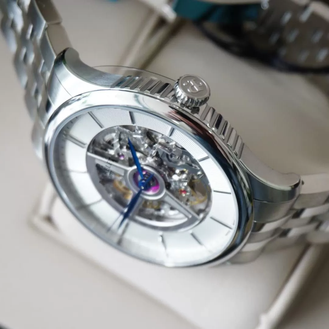 Võ được làm bằng thép chống ghỉ cao cấp. với đường kính 42.5 mm và độ dày 10.7 mm. Mặt kính sapphire chống lóa cả 2 mặt trước và mặt sau của đồng hồ.
