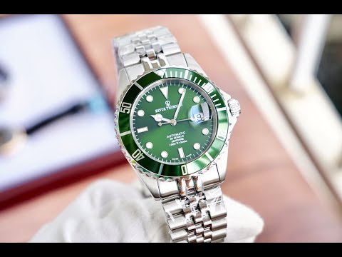- Viền bezel được thiết kế màu xanh lá cùng tông với dial, Viền Bezel có thể xoay được.