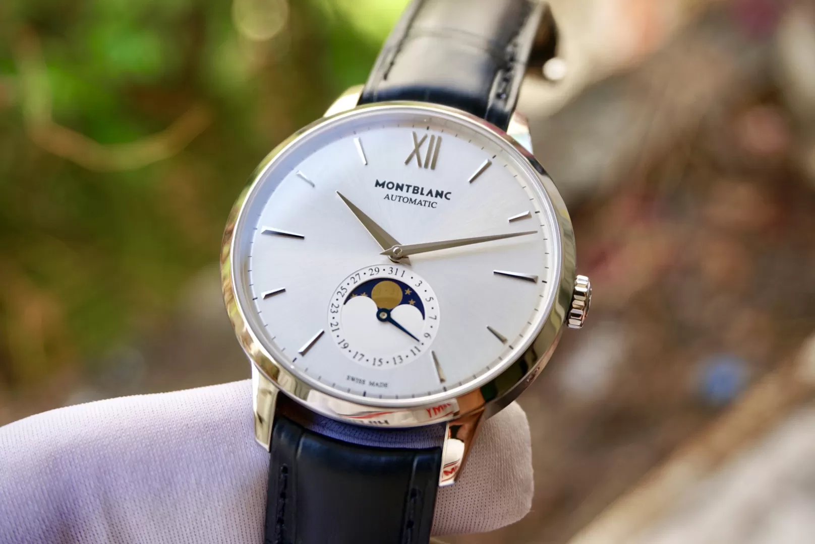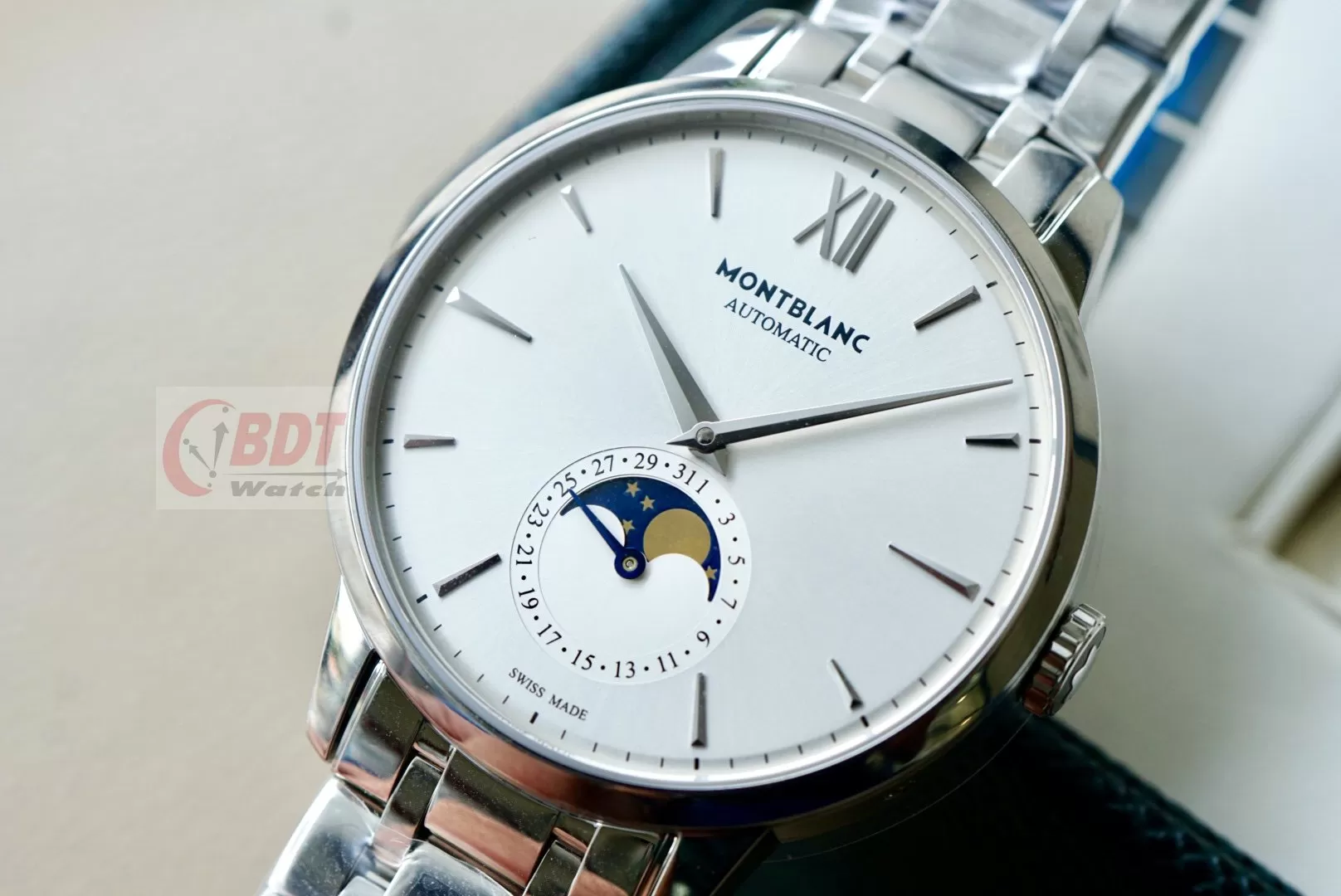 - Điểm nổi bật của Đồng Hồ MontBlanc Heritage Spirit Moonphase 111184 là chức năng moonphase cao cấp được đặt ở góc 6h, kèm với đó là thiết kế cực kỳ đơn giản với lịch ngày, kim giờ và kim phút nhưng vẫn tôn lên vẻ sang trọng và đẳng cấp. Cọc số nổi được hoàn thiện khá tốt và sắc nét. Vỏ và dây được làm bằng thép không ghỉ cao cấp 316L cực kỳ sáng bóng và sang trọng.