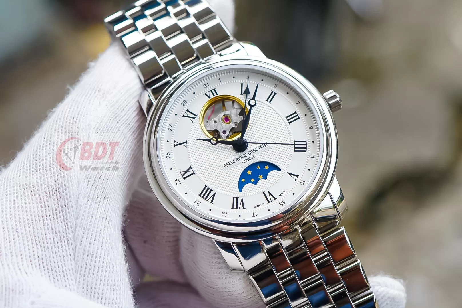 - Với những tính năng vượt trội và thiết kế rất đẹp mắt, tinh tế nêu trên, Đồng hồ Frederique Constant Moonphase Open Heart FC-335MC4P6B2 là 1 mẫu đồng hồ dress watch đáng để sở hữu cho các quý ông thành đạt.